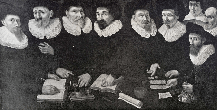 Op dit schilderij van Verzijl uit 1644 van de regenten van het Almoezeniersweeshuis liggen op de tafel de ontwerpen van het poortgebouw en de nieuwe vleugel van het weeshuis. De schilder portretteerde zichzelf linksachter de voorzitter, zijn zwager Gerrit Jansz ‘t Hart. Het lijkt met een knipoog naar Jan Arienz Duif, die zichzelf acht jaar eerder ook afbeeldde op een schilderij van de regenten (zie onder).
