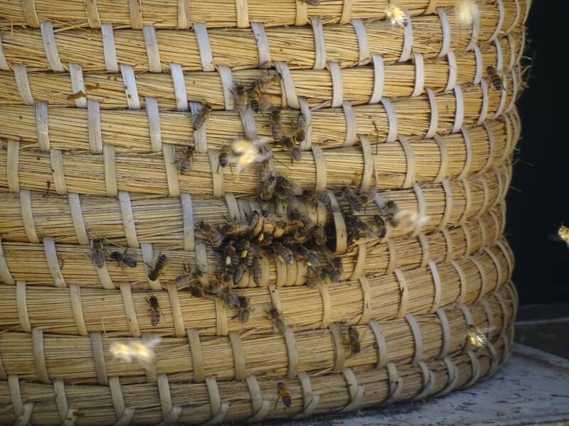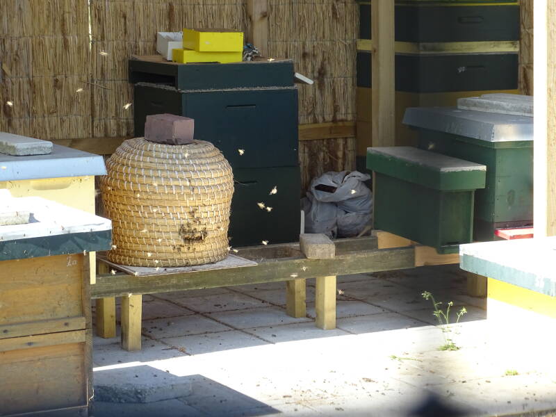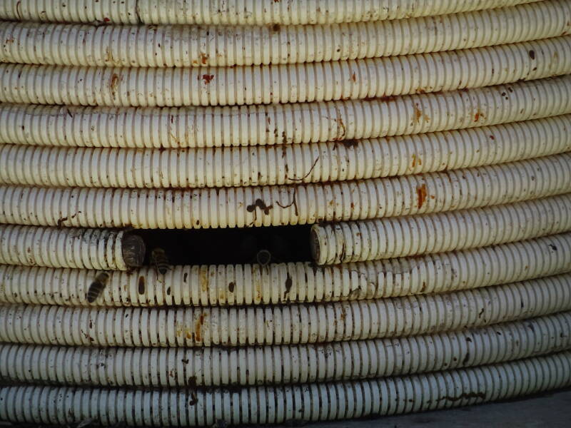 De honingbijen op het zogenaamde bijeneiland aan de Hoofdweg Zuid in Nieuwerkerk aan den IJssel zijn al aardig actief met het verzamelen van pollen. De korven van de ZZZZuidplasbijtjes zien er landelijk uit, maar blijken deels gemaakt van flexibele electriciteitsbuis. Ze huisvesten aardig wat kolonies van imker Cor Bos die graag meer informatie hierover wil geven via telefoon 06-23274362.